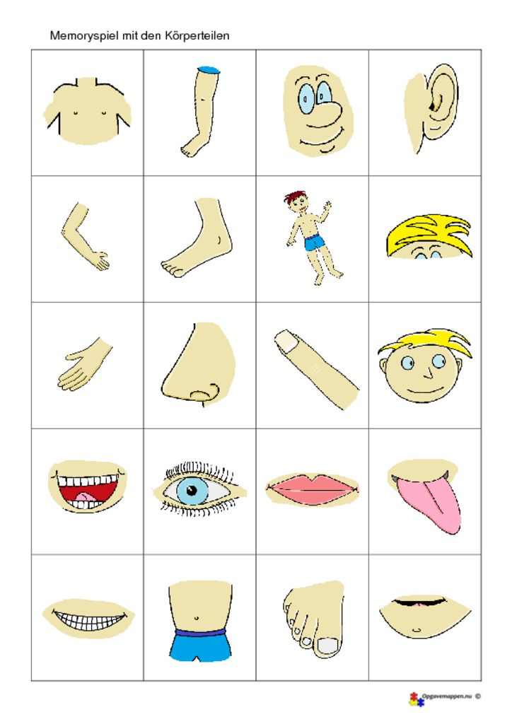 Memory Spiel Mit Dem Körper – Körperteile – Opgavemappen.nu Motion